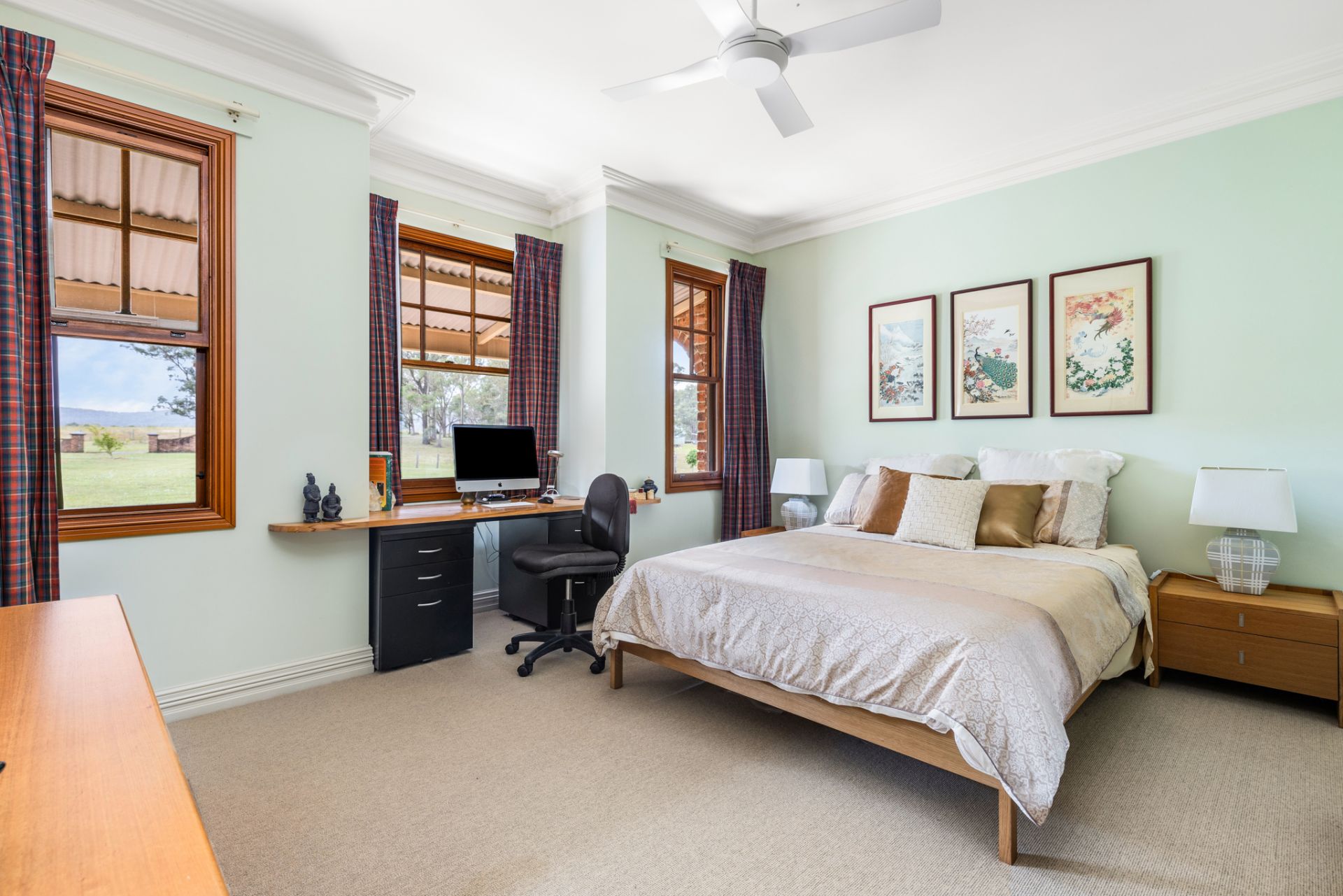 - Thoughtfully placed wood burning heater, air conditioning and ceiling fans