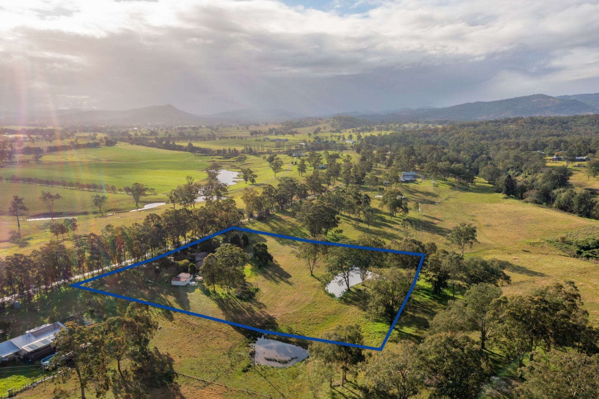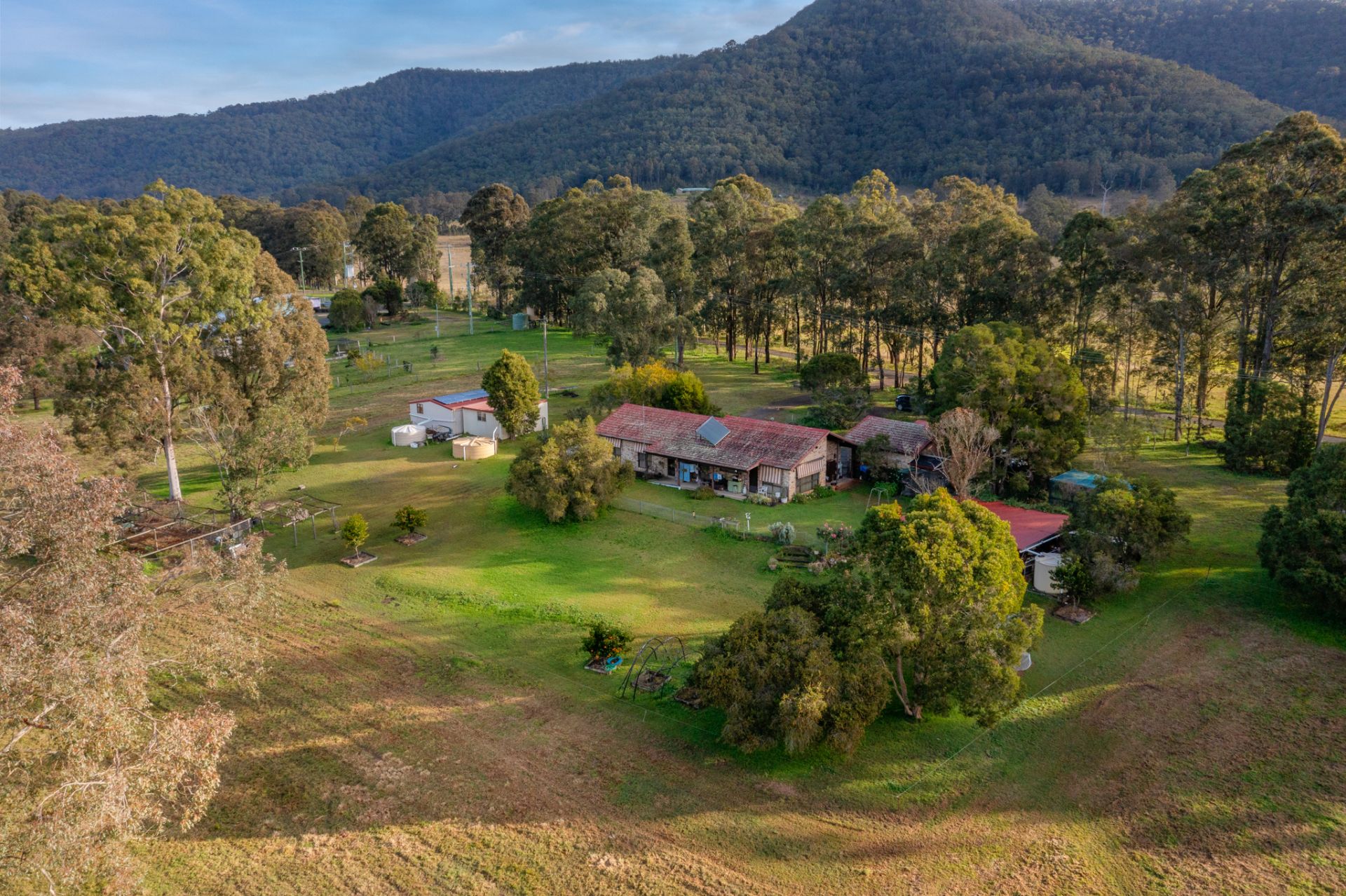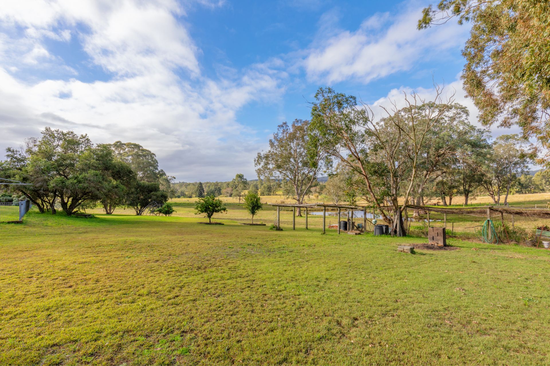 The Grounds: These 5 extremely well kept acres are fenced into 2 main paddocks and a dog proof house yard, surrounded by beautiful mature shade trees within an established citrus garden. Water is abundant here with a high average annual rainfall and plenty of tank water. Adding to the charm is a picture perfect dam. A circular driveway leads you to a freestanding 2 car garage with carport. While up the southern end of the farm we have another 2 freestanding Colourbond sheds.