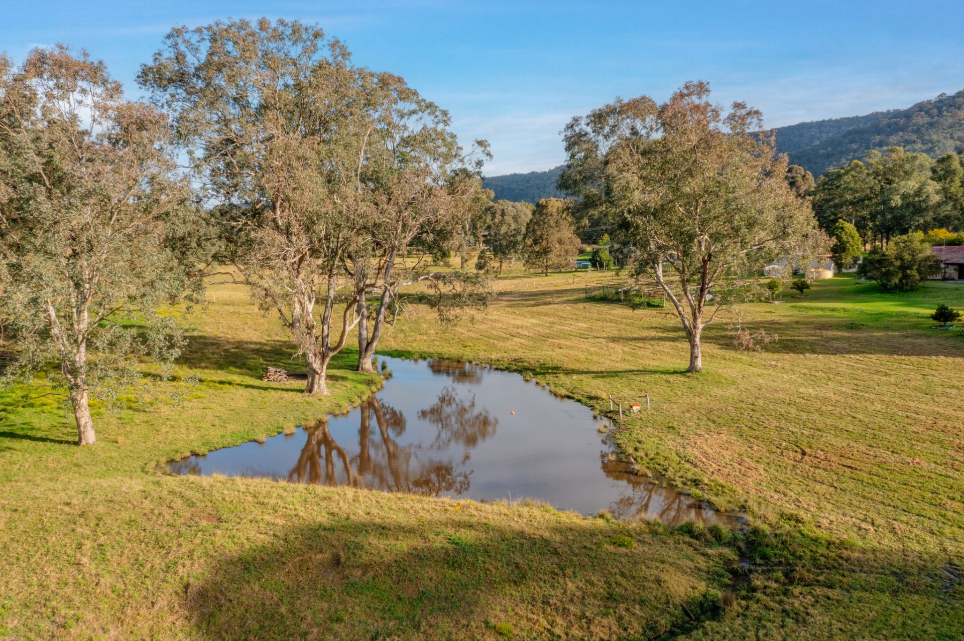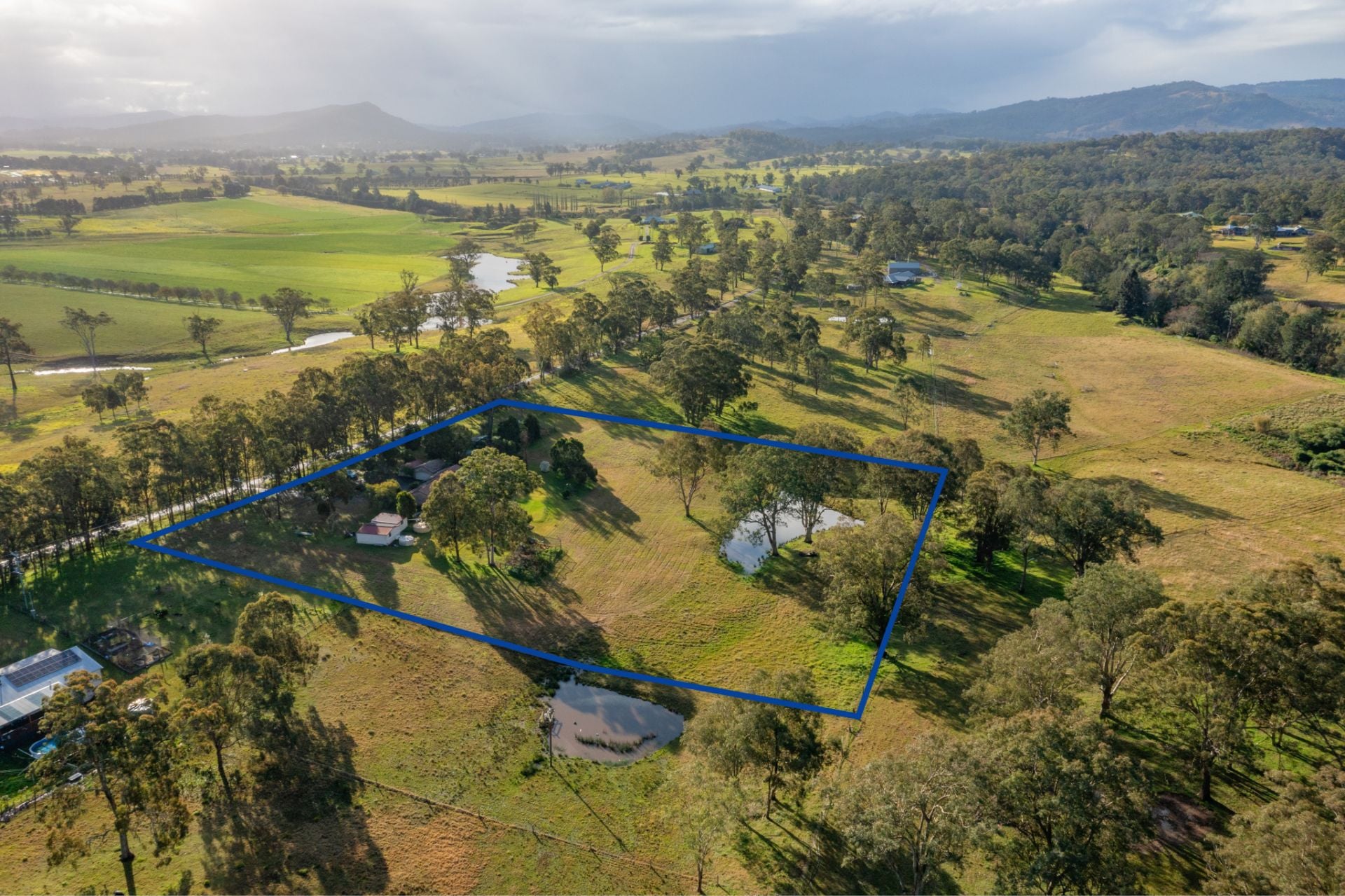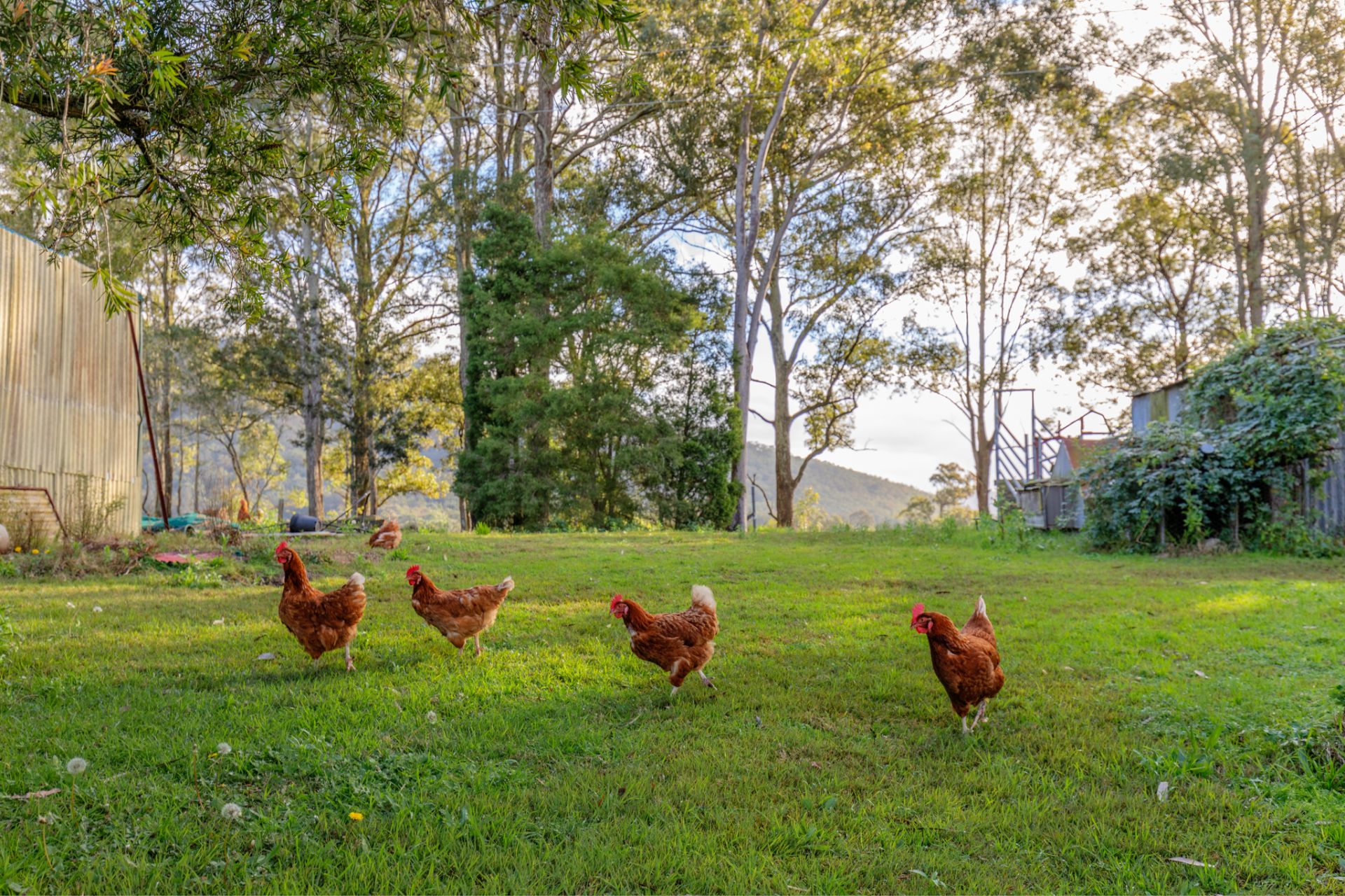 The Grounds: These 5 extremely well kept acres are fenced into 2 main paddocks and a dog proof house yard, surrounded by beautiful mature shade trees within an established citrus garden. Water is abundant here with a high average annual rainfall and plenty of tank water. Adding to the charm is a picture perfect dam. A circular driveway leads you to a freestanding 2 car garage with carport. While up the southern end of the farm we have another 2 freestanding Colourbond sheds.